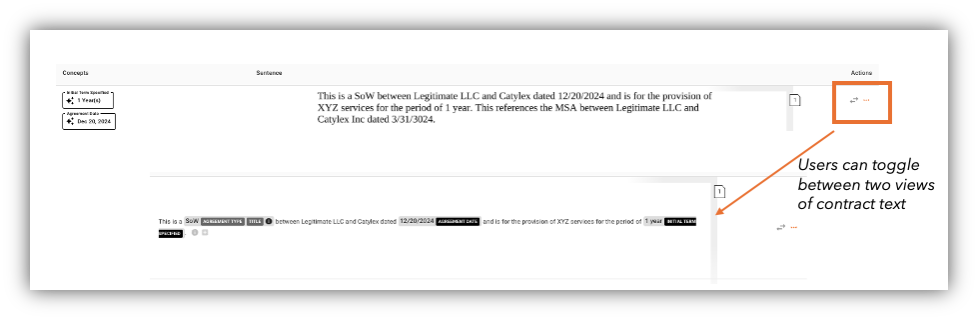 - Perform QC from this sentence-by-sentence view of a contract - easier for adding tags and/or new concepts